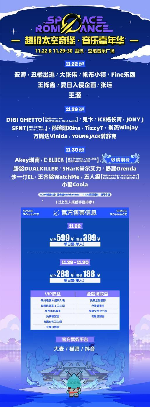 用最顶级的阵容,最炸裂的现场打造一场名副其实的超级狂欢!“超级·太空奇缘音乐嘉年华”将于2025年11月22日&29-30日于武汉·空港音乐广场震撼启幕!本次嘉年华以“SUPER CARNIVAL”为核心主题,让积蓄一年的能量在音浪中彻底释放,现实需要出口,狂欢不需要理由!此刻,忘记所有规则,“超级狂欢”就是唯一的定义!