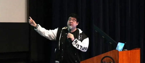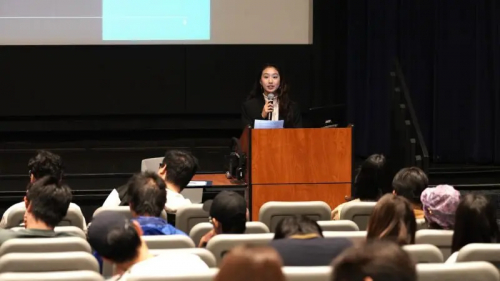 美国领创商业联盟副主席金千旭作为第二位演讲嘉宾则从技术角度切入,以更实践的方式展示 AI 在现实环境与社区问题中的应用。他通过两项真实的 AI 项目,引导同学们理解人工智能如何真正“落地”到可持续发展情境中。