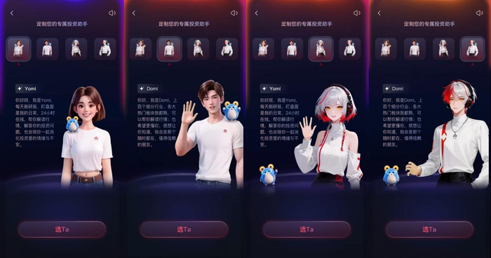 在“AI涨乐”APP中,设置了四个不同风格的AI投资助手,不但可以聊天互动,还能执行选股、盯盘、下单、提醒等一系列复杂操作。