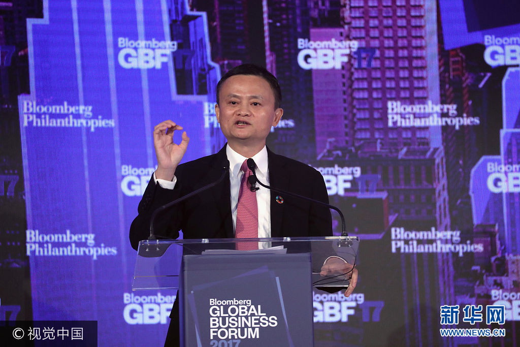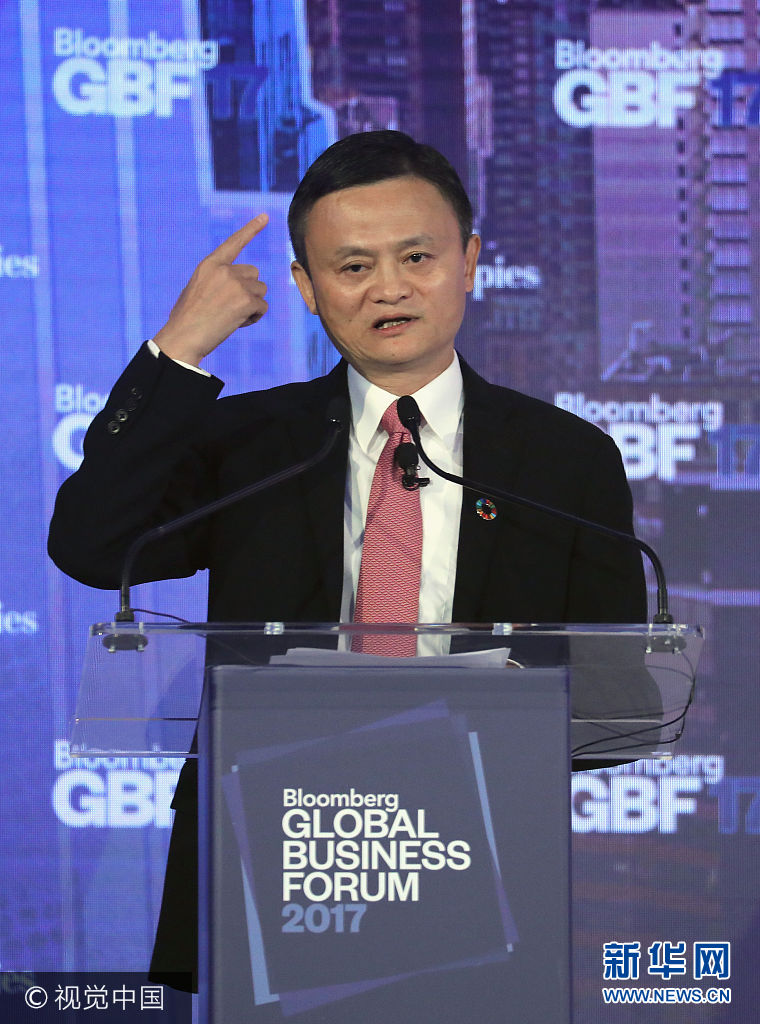 当地时间2017年9月20日,美国纽约,彭博全球商业论坛开幕,阿里巴巴创始人马云出席。(图片来源:视觉中国)
