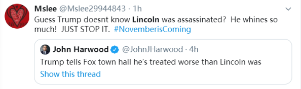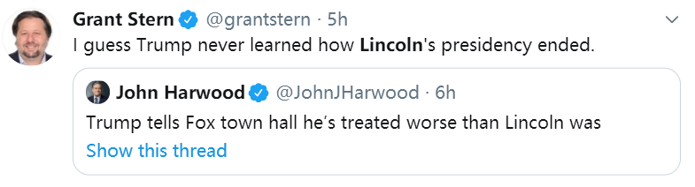 “我想特朗普从来就不知道林肯的总统任期是如何结束的。”