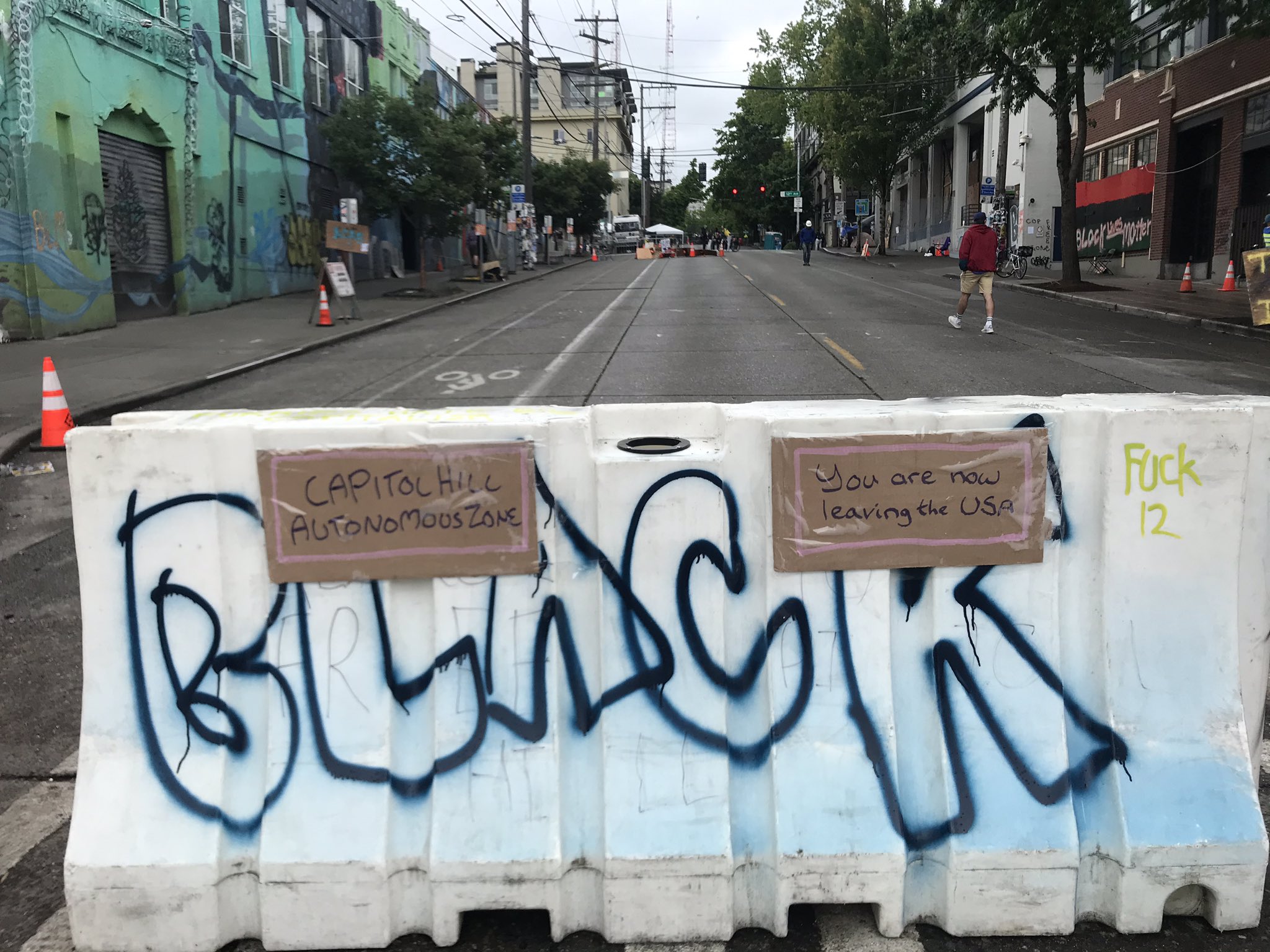架起路障,喷出涂鸦,再贴上两块手写的瓦楞纸板……8日晚,美国西雅图市的示威者宣称成立“国会山自治区”(Capitol Hill Autonomous Zone)。在一整夜的“改造”后,街道已经彻底改头换面。翌日,示威者们闯入市政厅办公楼,他们静坐、喊口号,并要求市长下台。