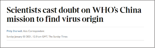 近期,世卫组织将派专家组到中国等国展开病毒溯源调查。人还未到,英国媒体就急不可耐对中国搞起“有罪推论”。1月3日,《星期日泰晤士报》发表文章,先抹黑专家组成员的专业水平,暗示此次调查是对中国的“粉饰”,接着老调重弹,搬出“瞒报疫情”“实验室泄露”等用烂了的黑锅栽赃中国防疫。歇斯底里、撒泼打滚的模样,尽显无脑喷子的本色。