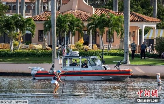当地时间2024年12月30日,美国海岸警卫队巡逻艇在海湖庄园巡逻。