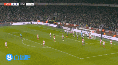 第13分钟,阿森纳左侧角球机会,后点加布里埃尔头球攻门稍稍高出↓