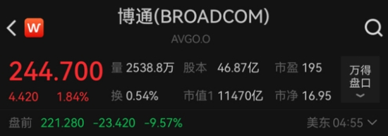 其次则是与AI算力息息相关的云计算中心巨头博通。截至发稿前其美股盘前跌幅9.57%。曾被认为同时布局算力和算法“软硬通吃”博通,日内跌幅已经完全没收了近两周该公司的上涨。