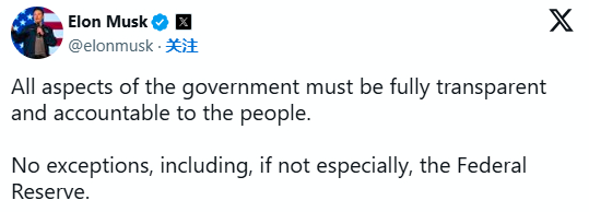 马斯克接连发声要审查美联储