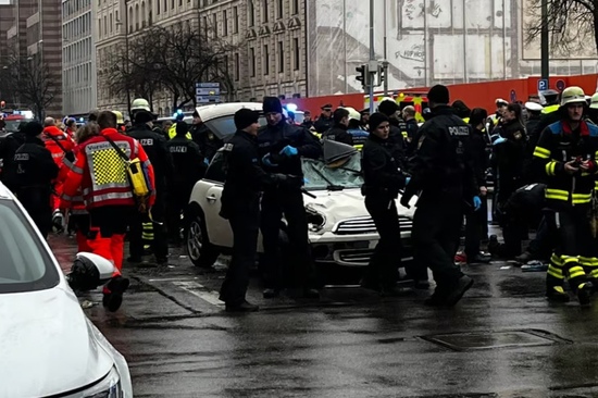 当地时间2月13日,德国慕尼黑市中心一辆汽车撞向正在举行罢工的人群。慕尼黑警方确认,该事件已造成至少20人受伤,其人2人伤势严重。肇事司机已被控制。