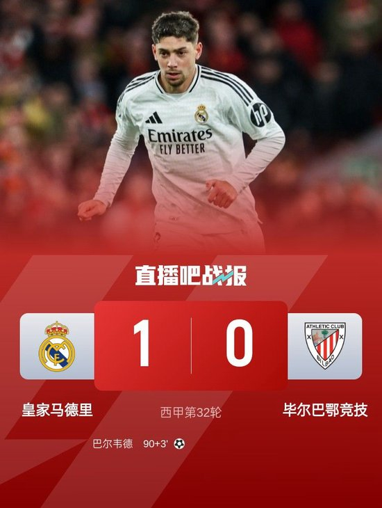 全场比赛结束,皇马1-0毕尔巴鄂竞技。