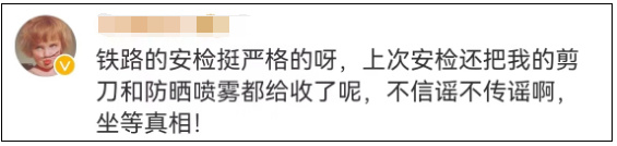 今天下午顶端新闻报道,中国铁路12306相关工作人员表示,目前上述事件,铁路方正在进行调查,“但是其实也不能听风就是雨,铁路方面规定,所有乘客乘车前必须接受检查,且不能携带管制刀具,但是根据国家铁路局、公安部此前最新规定,自2022年7月1日起,刀刃在6厘米以内的是可以携带上火车的。”