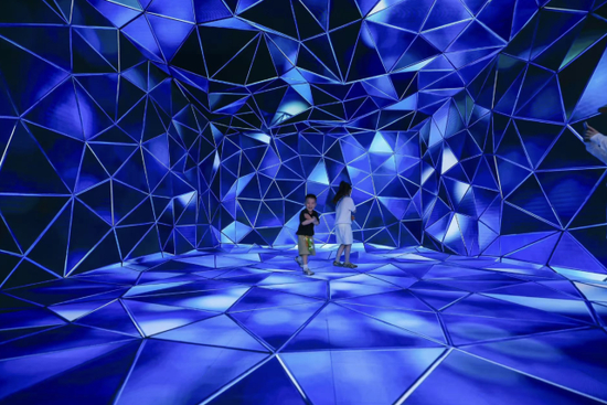 在VR互动影院隔壁,由河南大象元公司带来的虚拟现实电影体验厅,同样让市民排期长队参观体验。据现场负责人介绍,此次带来的展品是获得了中国虚拟现实电影第001号和002号“龙标”的作品《秦宫夜宴》和《隐秘的秦岭》,观众带上VR头显设备后,不仅能360°围观唐朝乐舞俑“蹦迪”,还能“触摸”千年文物。