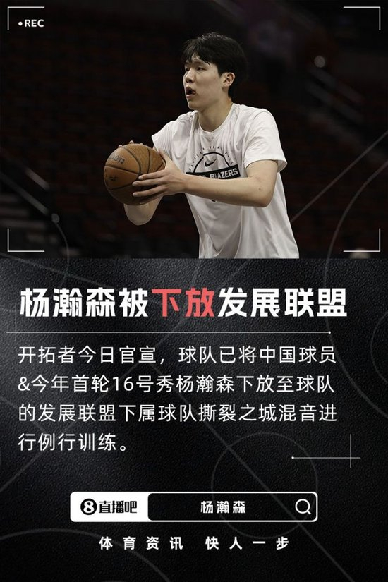开拓者官方:球队已将杨瀚森下放至发展联盟进行训练(直播吧)