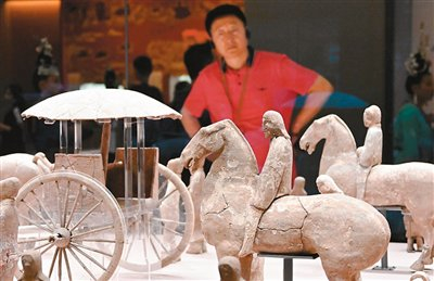 8月28日,“太保墉燕——房山琉璃河遗址专题展”在首都博物馆开幕。展览呈现了琉璃河遗址历次考古发掘出土的文物180件(套),其中首次展出的文物113件(套)。图为展出的车马坑模型。新华社记者 陈钟昊摄