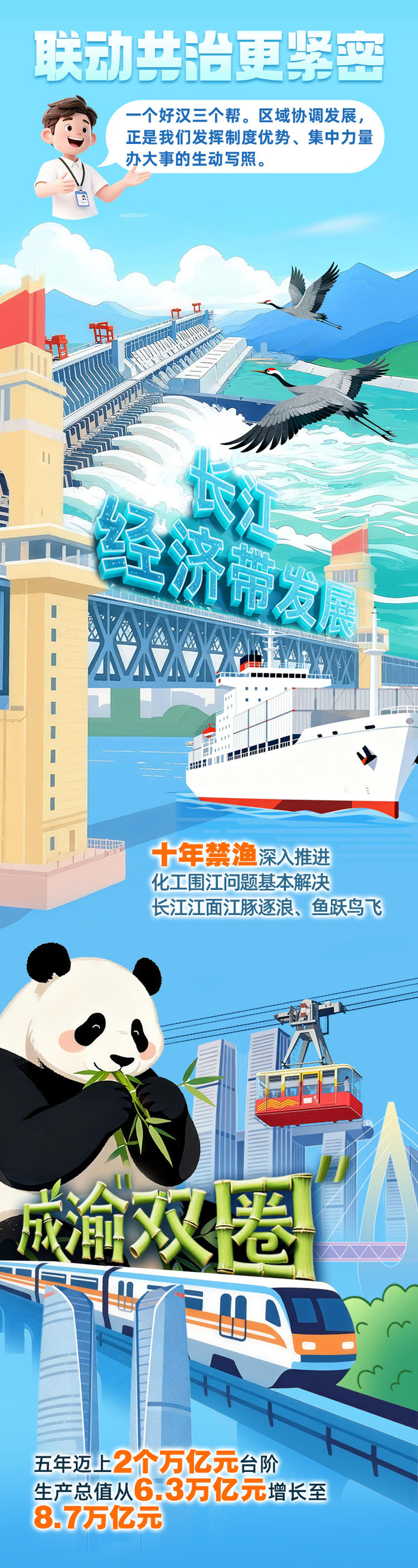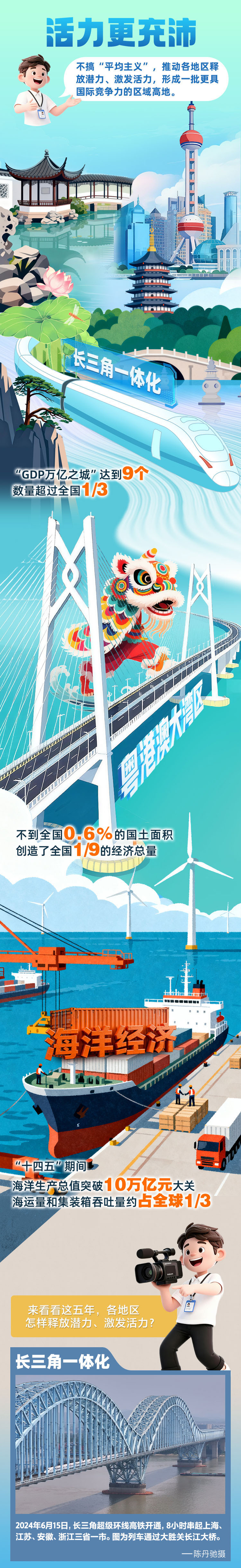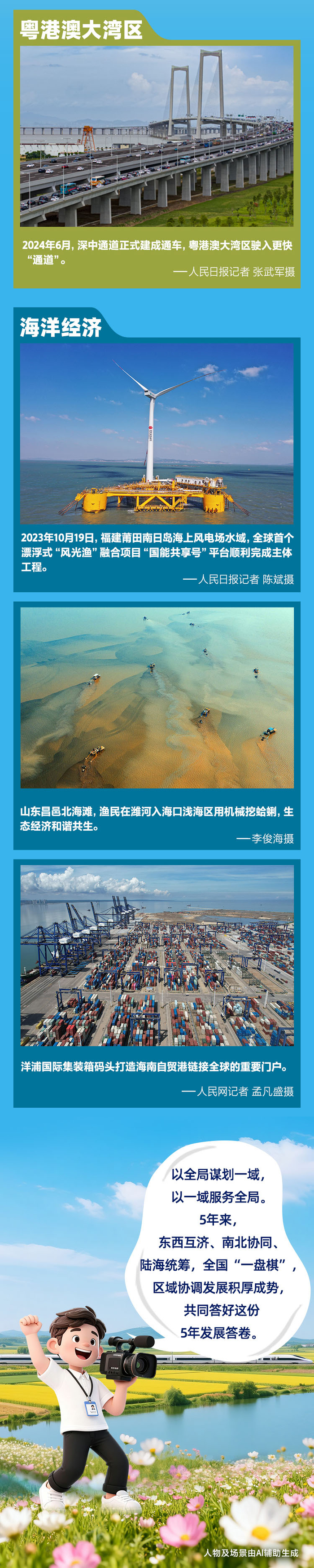 5年来,京津冀、长三角、粤港澳大湾区动力源更强劲,东部地区与西部地区互补效应更加彰显,长江经济带共抓大保护、不搞大开发成为共识,黄土高原由黄转绿,黄河水由浑变清……国家重大战略持续推进落地落实,各区域功能定位更清晰、优势互补更有效、联动共治更紧密、发展活力更充沛。