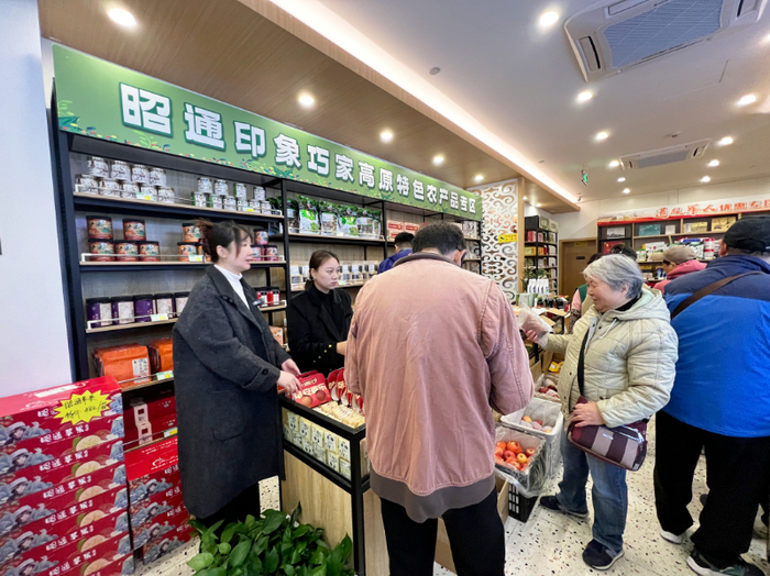 12月1日,曹杨新村街道慈善超市·武宁店内格外热闹。来自云南昭通巧家县的小碗红糖、冰糖心苹果、核桃乳等30余种农特产品首次上架,吸引居民纷至沓来。这场跨越2000多公里的“公益助农”行动,让云南高原特产与曹杨社区慈善事业温暖相遇。