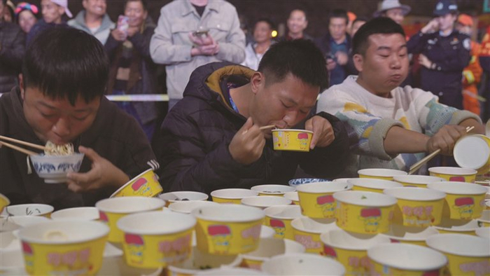 而极具挑战性的“加加面比赛”活动,更是让吃面过程充满了趣味性,吸引着无数食客踊跃挑战,破纪录者可享受终身免费吃面的福利,这一规则大大激发了食客的参与欲,成为极具传播性的话题点,让加加面从单纯的美食,转变为带流量的文化体验项目。据悉,目前最高挑战纪录是147碗。