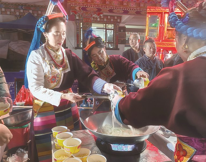 “人才培育是保障传承活力的核心所在,也是让年轻人扎根的关键。”叶聪介绍,在芒康县,加加面各级传承人主动扛起责任,开设“加加面公益课堂”和“非遗传承培训班”,毫无保留地向村民传授和面、熬汤、炒臊子等核心技艺,既让更多人掌握了安身立命的本领,也为产业发展储备了充足人才。在此基础上,当地政府还通过政策引导为学会技艺的学员提供创业支持,从手续办理到经营指导全方位帮扶,催生了更多加加面专营店与配套民宿,逐渐形成规模效应显著的产业集群,如今盐井周边已发展出10余家加加面专营店。