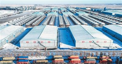12月12日,送粮车在黑龙江省富锦市一粮食收储企业门前排队,一派繁忙景象。