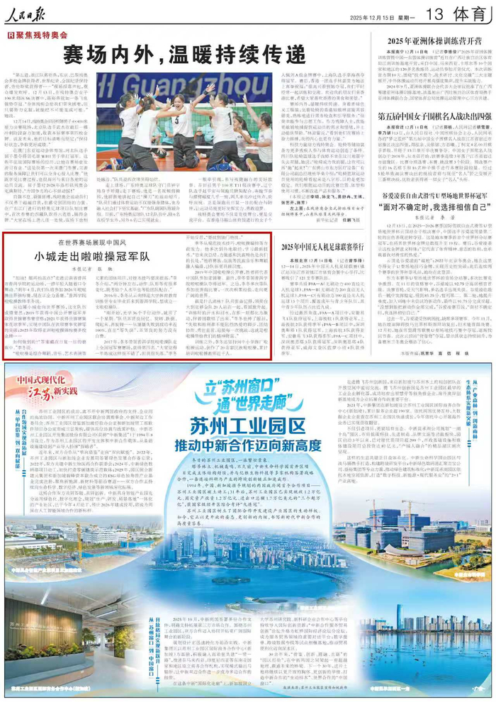赢是什么滋味?队员张淼记得,领奖台大到足够全队20人站在一起,看国旗升起。“训练时的汗水和泪水,在那一刻都化为激动,伴着国歌唱了出来。”李冬也掉了眼泪,“失败和胜利都不能阻挡热爱的脚步,团结协作、勇往直前,迎接每一次挑战,这就是啦啦操带给我们的精神财富。”