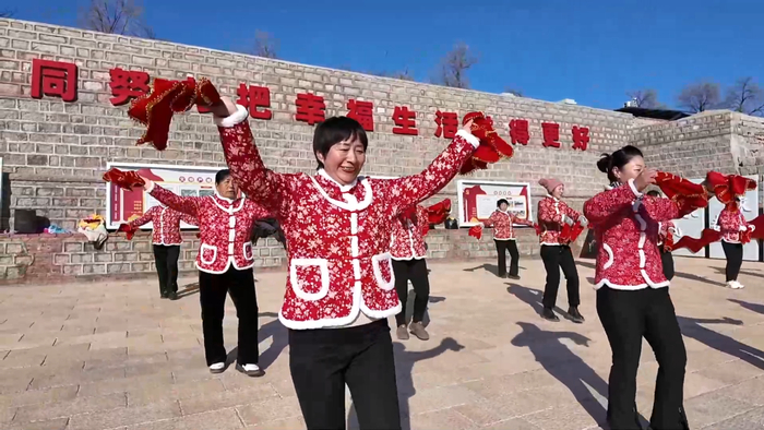 寒冬腊月,年味渐浓,村民在广场上正在为即将到来的春节联欢排练舞蹈,乡村振兴的图景在祝家沟村正一步步成为现实。