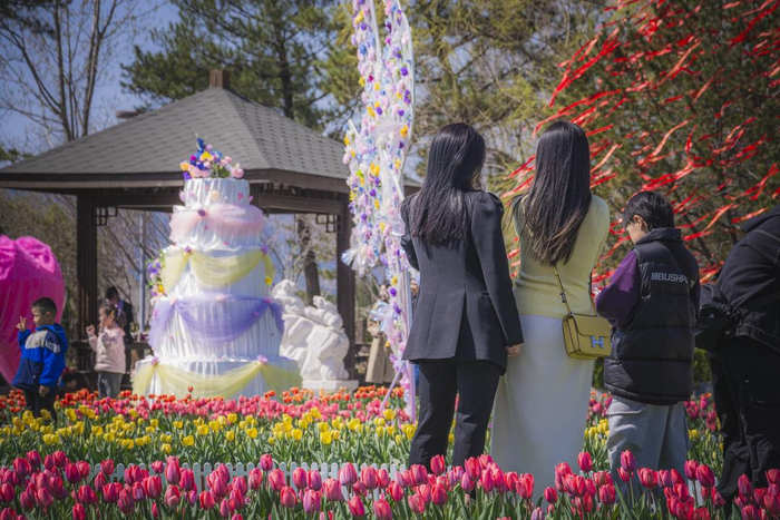 除了城市公园,城郊自然景区也成为赏花踏青的好去处。青州九龙峪景区3000平方米郁金香花海吸引大批游客打卡,游客量同比增长约15%。“郁金香只是‘引子’,游客入园后还可体验溶洞探幽、玻璃漂流、空中摇篮、齐鲁天路飞车等游乐项目。”景区运营中心负责人张永刚说。
